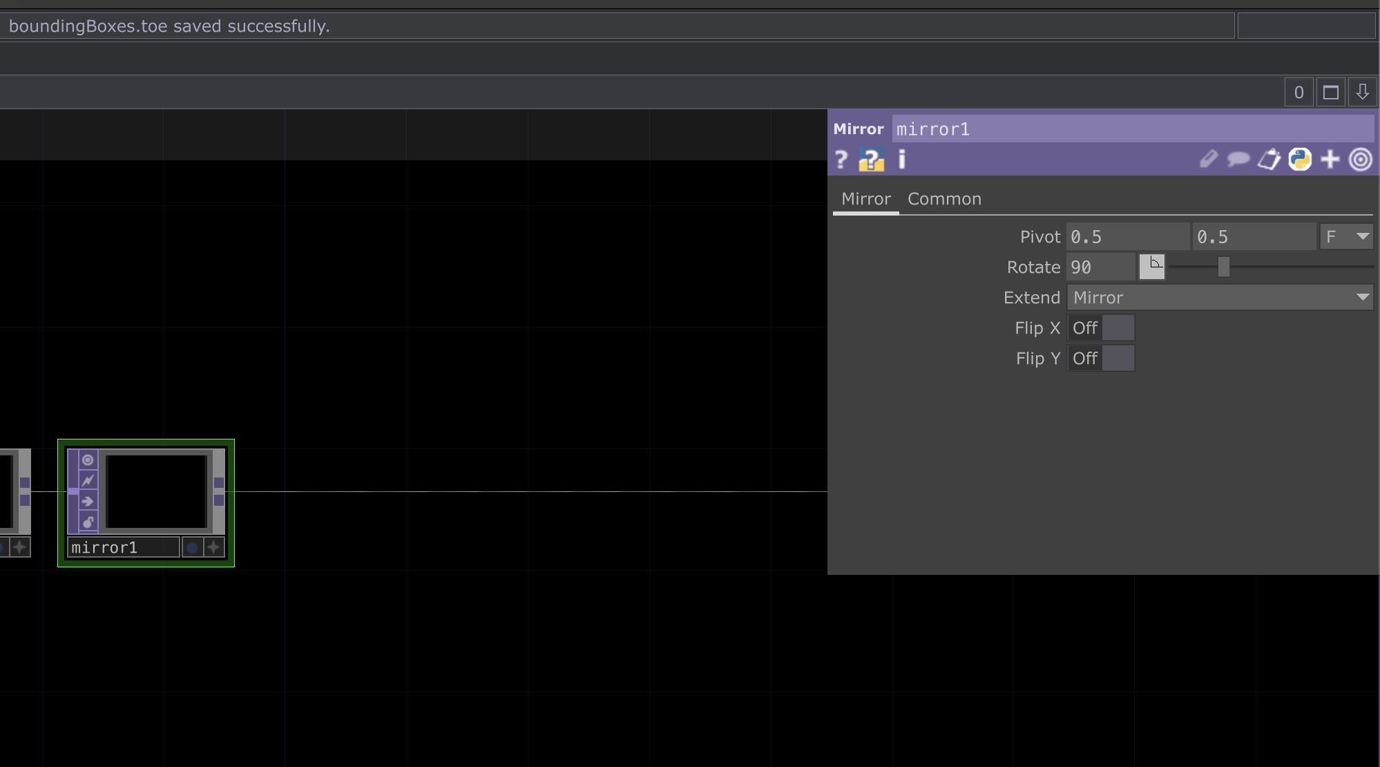 | Next add a mirror TOP with the following parameters |