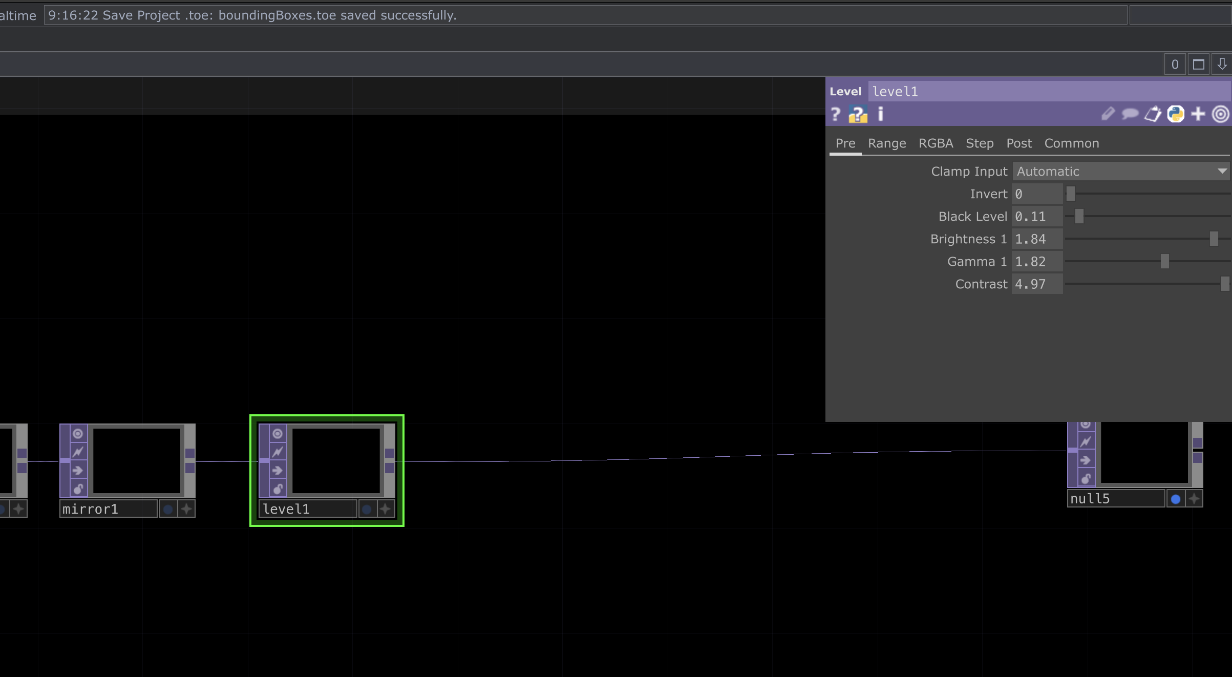 These nodes will help give a CRT like affect that I like. See below for how they’re connected and the parameter settings used for each.