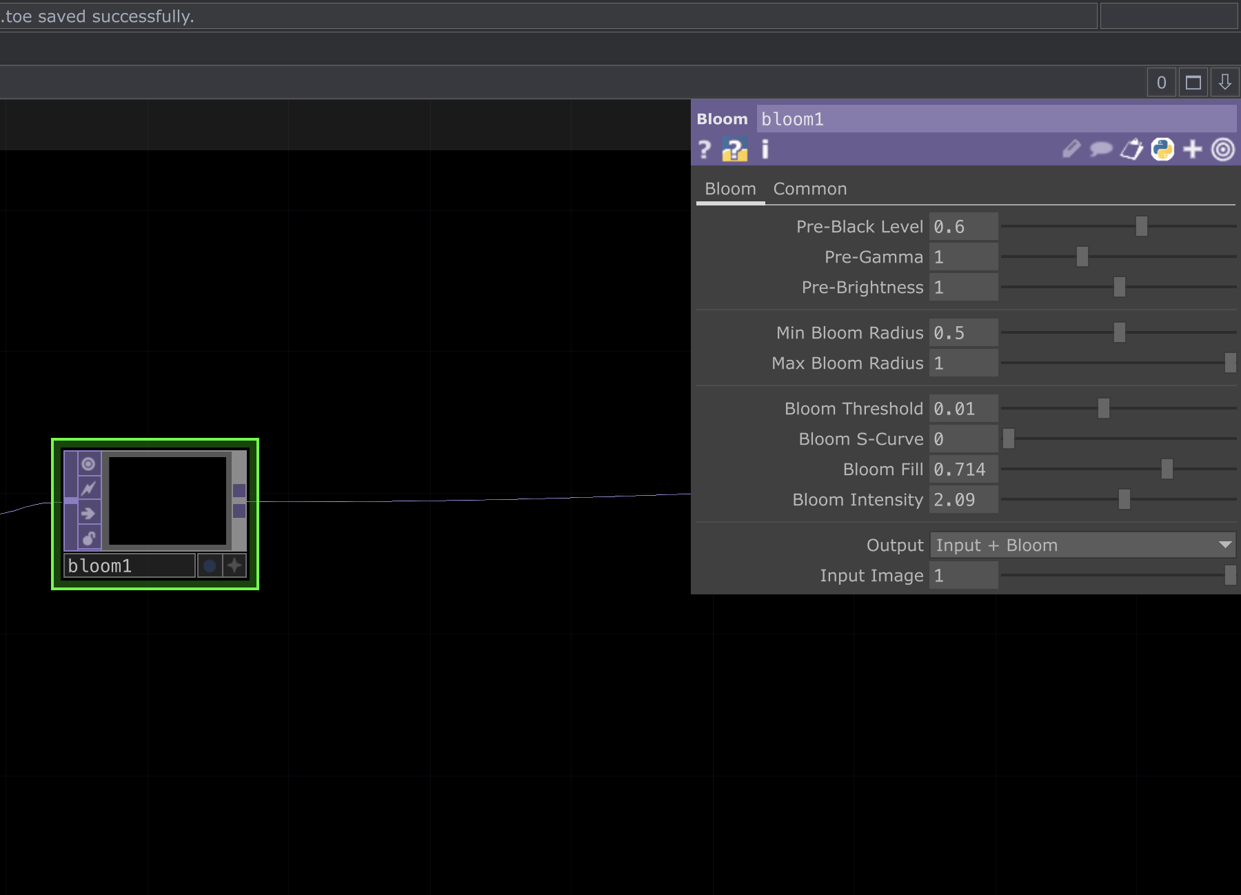 | Next add a bloom TOP with the above parameters |