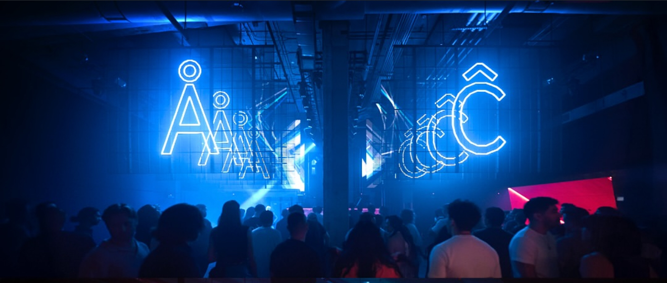 The LED walls in the club room is half spectical and half art installation. All 10 screens are controlled via touch designer and that means that as a designer myself, i have to program my visuals with not only audio reactivity but with relativity as well. A good visual will not be really bright on the left side of the room, and completely black on the other side. This was a challenge at first, but over time ive tuned my visuals to be more encompassing of the entire canvas.